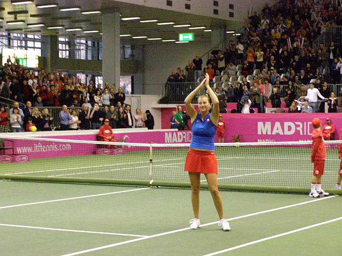 Installation and removal of portable tennis surface for FED Cup 2009.